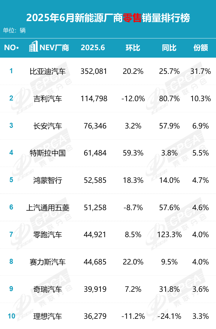 2025年6月,新能源汽車產銷分別完成126.8萬輛和132.9萬輛,同比分別增長26.4%和26.7%,新能源汽車新車銷量達到汽車新車總銷量的45.8%。1-6月,新能源汽車產銷分別完成696.8萬輛和693.7萬輛,同比分別增長41.4%和40.3%,新能源汽車新車銷量達到汽車新車總銷量的44.3%。